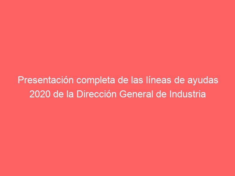 Presentación completa de las líneas de ayudas 2020 de la Dirección General de Industria