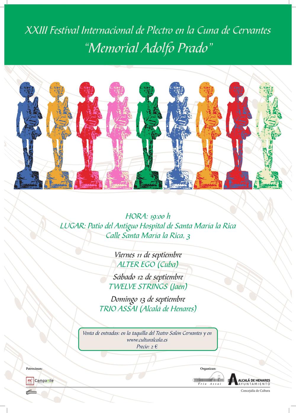 El antiguo Hospital de Santa María acogerá los días 11, 12 y 13 de septiembre, a partir de las 19:00 horas, el XXII Festival Internacional de Plectro en la Cuna de Cervantes «Memorial Adolfo Prado», organizado por el Ayuntamiento de Alcalá de Henares.
