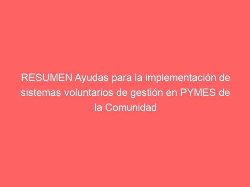RESUMEN Ayudas para la implementación de sistemas voluntarios de gestión en PYMES de la Comunidad de Madrid