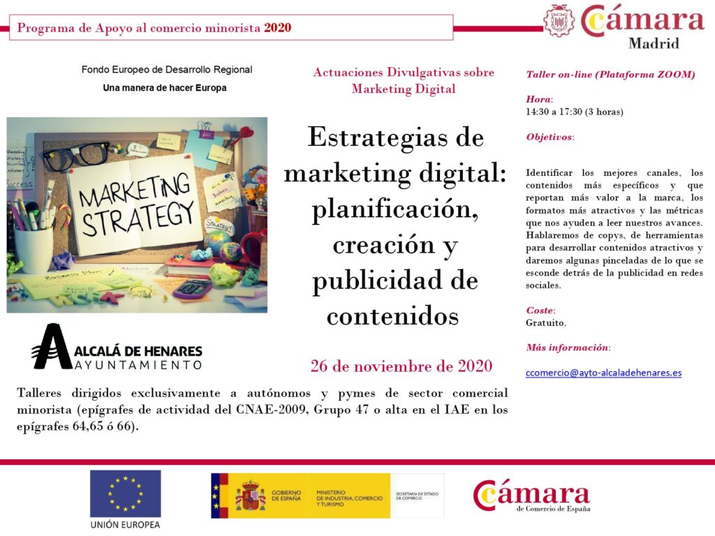ALCALÁ DE HENARES/ 23 NOVIEMBRE 2020/ El Ayuntamiento de Alcalá de Henares ha organizado un taller gratuito y online de marketing digital que se llevará a cabo este jueves, 26 de noviembre.