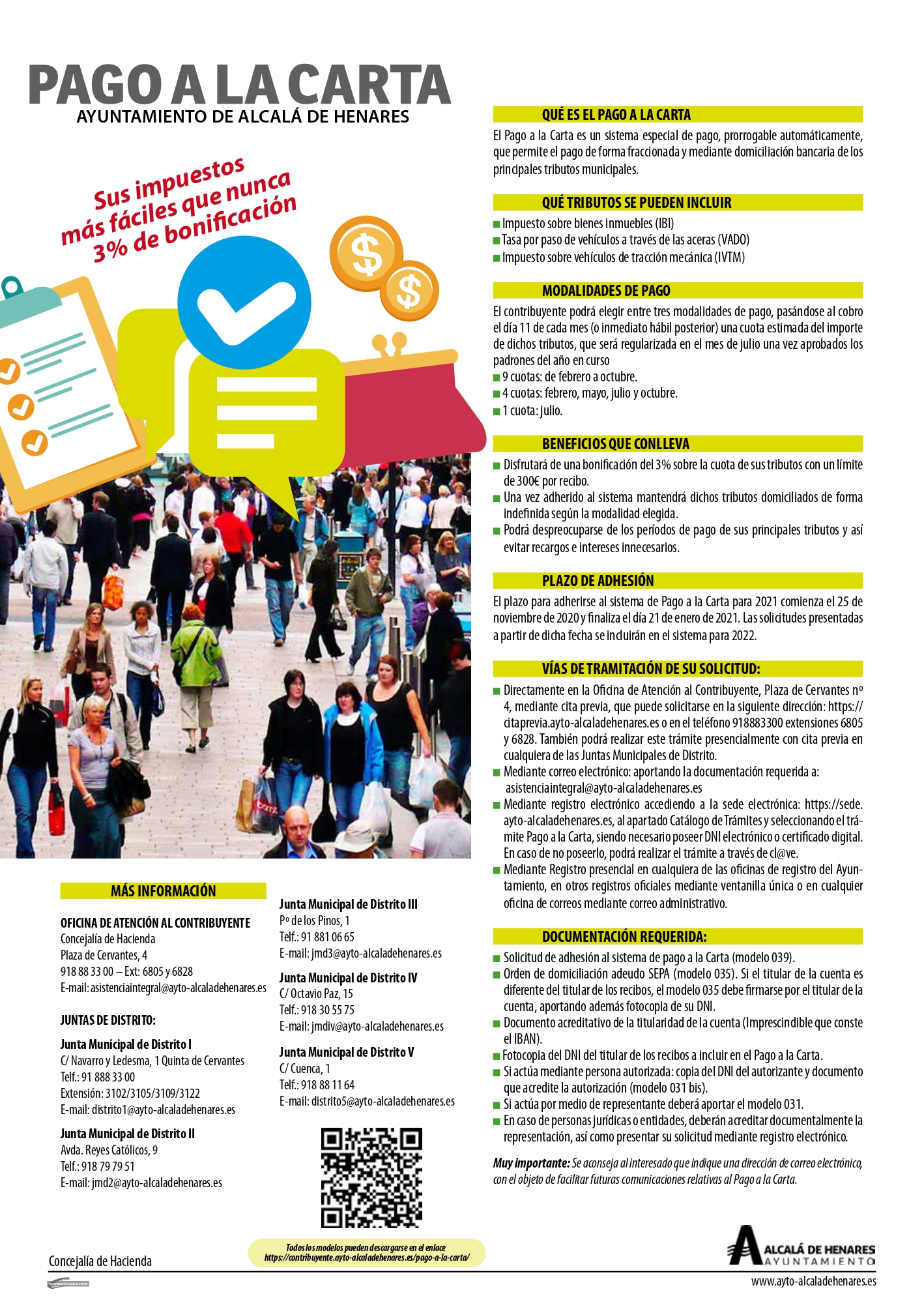 La entrada Mañana comienza el plazo para acogerse al sistema de pago a la carta se publicó primero en Ayuntamiento de Alcalá de Henares.