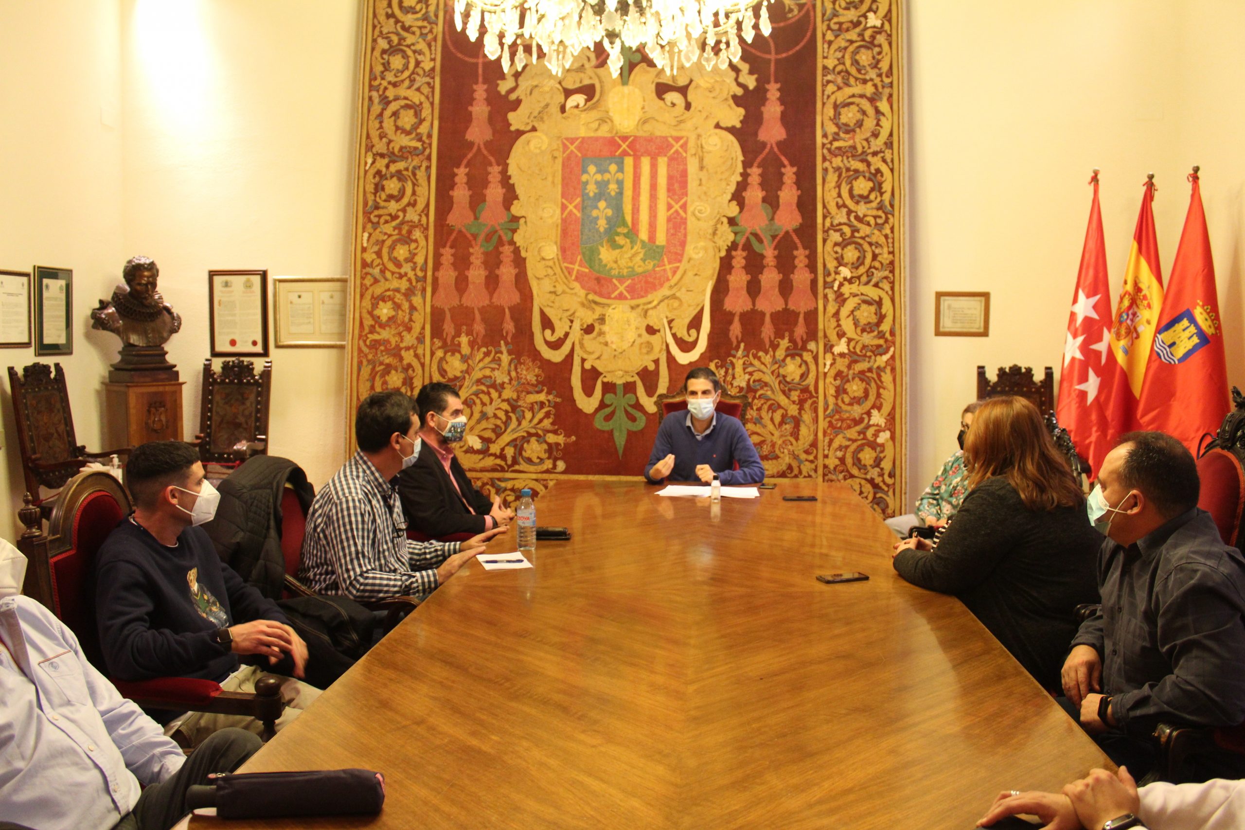 El alcalde de Alcalá de Henares, Javier Rodríguez Palacios, y el primer teniente de alcalde y concejal de Urbanismo, Alberto Blázquez, se han reunido esta mañana con el Comité de Empresa de Química Sintética.