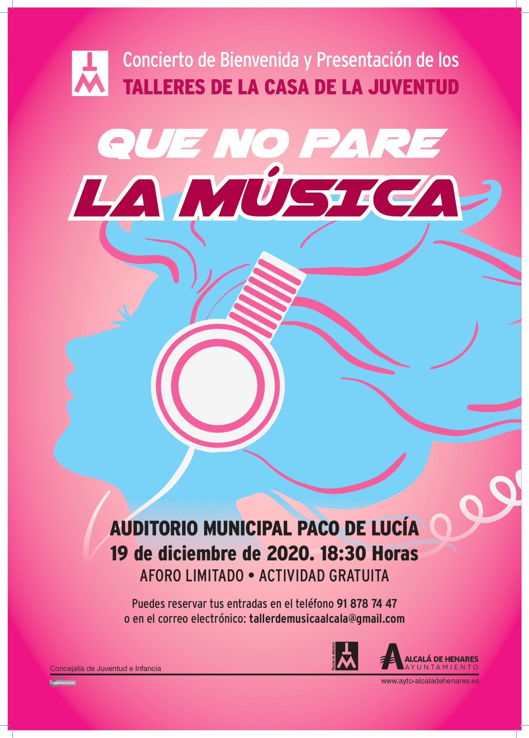 El Auditorio Municipal Paco de Lucía acogerá el próximo sábado 19 de diciembre, a partir de las 18:30 horas, el concierto de bienvenida y la presentación de las actividades que se realizan en la Casa de la Juventud a través de los diferentes Talleres de la Concejalía de Juventud e Infancia del Ayuntamiento de Alcalá de Henares.