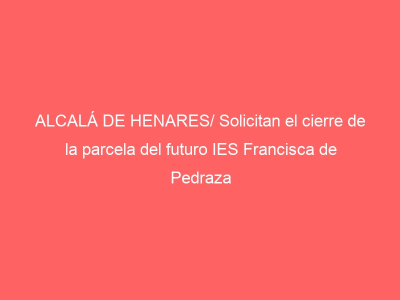ALCALÁ DE HENARES/ Solicitan el cierre de la parcela del futuro IES Francisca de Pedraza