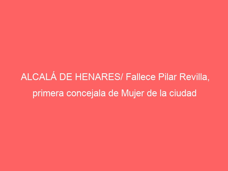 ALCALÁ DE HENARES/ Fallece Pilar Revilla, primera concejala de Mujer de la ciudad