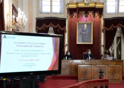 El Salón de Plenos del Ayuntamiento ha acogido esta mañana el acto de entrega de los premios de los concursos de escaparatismo y de páginas web del pequeño comercio de Alcalá de Henares, convocados por la Concejalía de Comercio para esta Navidad 2020.