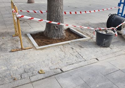 2.-Nuevas medidas de protección del arbolado durante las obras, como es el levantamiento de forma manual de los elementos que rodean el alcorque, evitando la actuación de maquinaria, o la protección de los elementos vegetables con tablas de madera.