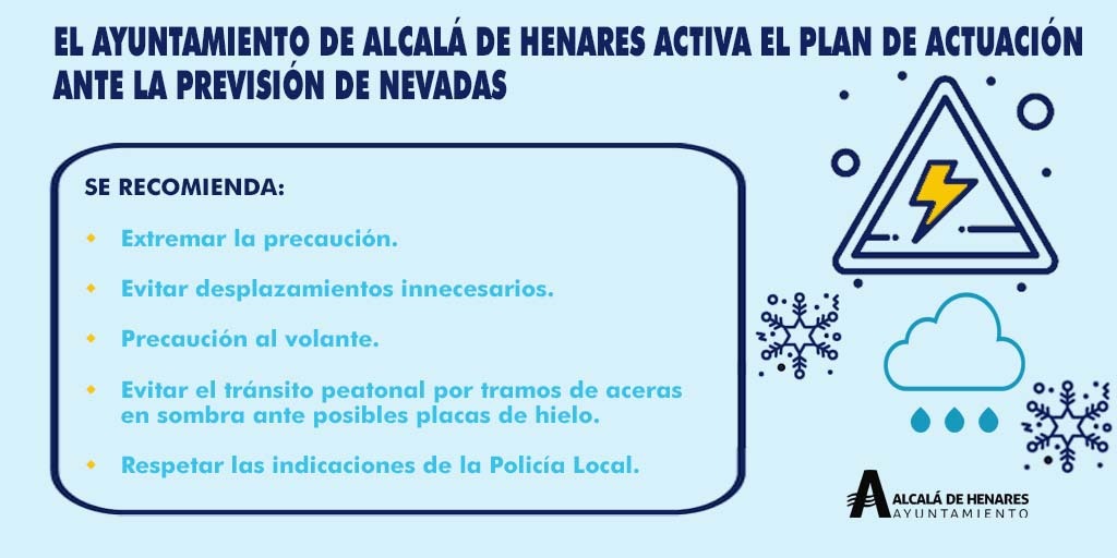 Alberto Blázquez, primer teniente de alcalde y concejal de Seguridad Ciudadana del Ayuntamiento de Alcalá de Henares, recuerda “la necesidad de extremar las precauciones y evitar desplazamientos innecesarios”, y apunta que “a este dispositivo especial de la Policía Local se suma un plan de actuación especial ante la posibilidad de nieve de forma que estas precipitaciones afecten en la menor medida posible a los vecinos y vecinas complutenses”.