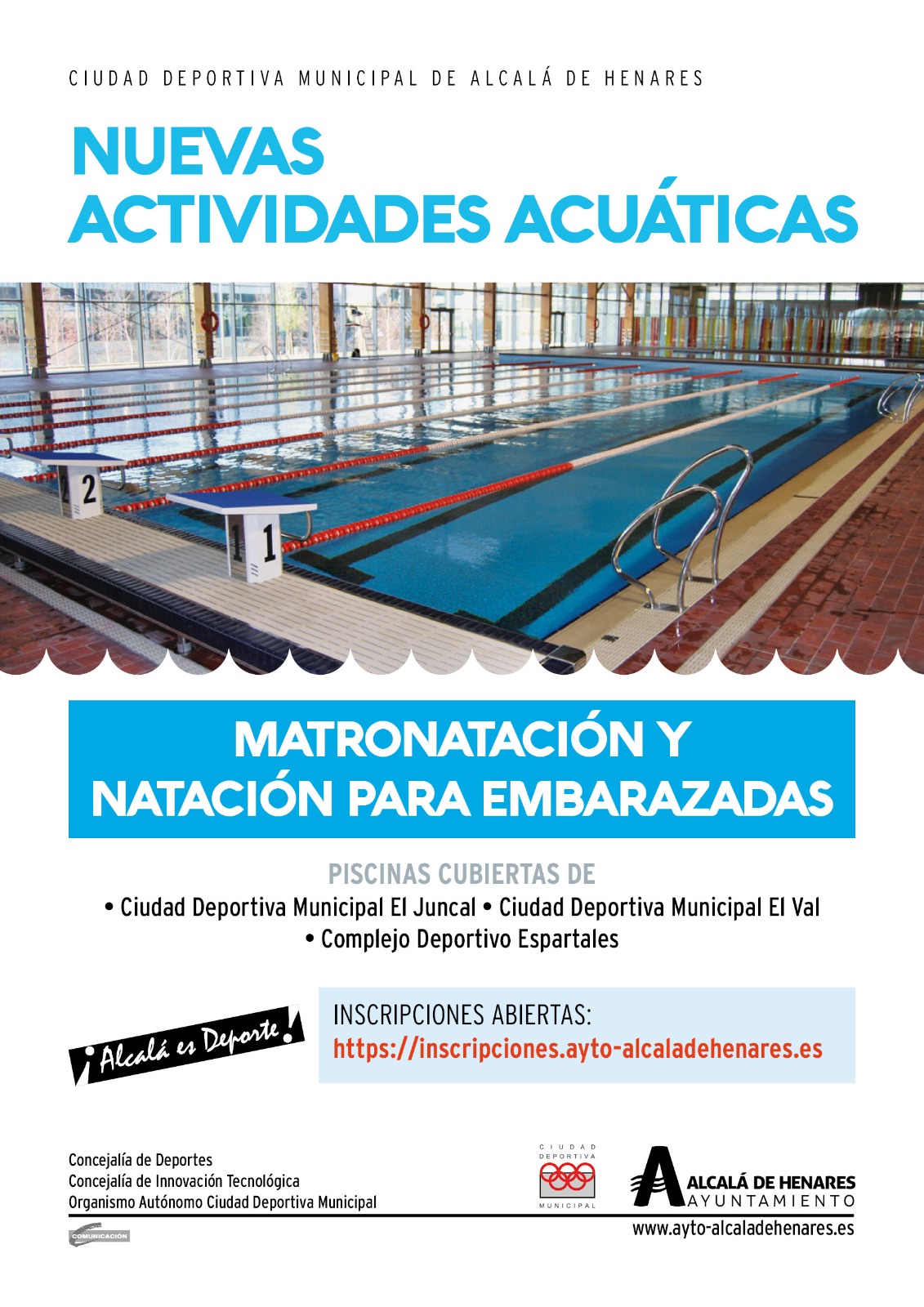 El Ayuntamiento de Alcalá de Henares, a través de la Concejalía de Deportes y el Organismo Autónomo Ciudad Deportiva Municipal, con la colaboración de la Concejalía de Innovación Tecnológica, habilitará a partir del mes de marzo dos nuevas actividades acuáticas: matronatación y natación para embarazadas. El proceso de inscripción a este nuevo servicio ya está abierto en la página web https://inscripciones.ayto-alcaladehenares.es/actividades-deportivas