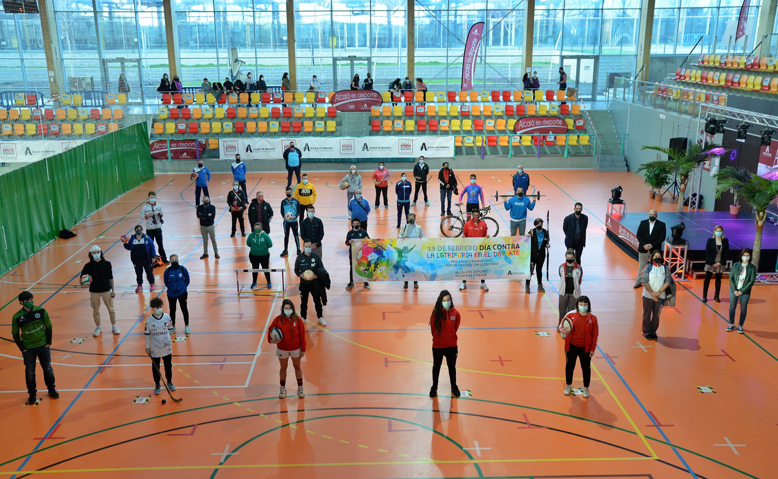 El Ayuntamiento de Alcalá de Henares, a través de las concejalías de Diversidad y Deportes, en colaboración con los clubes y entidades deportivas de la ciudad, ha realizado un manifiesto contra la LGTBIfobia en el Deporte bajo el lema “Más amor y menos odio. Por un deporte sin LGTBIfobia”, con motivo del Día Internacional contra la LGTBfobia en el Deporte.