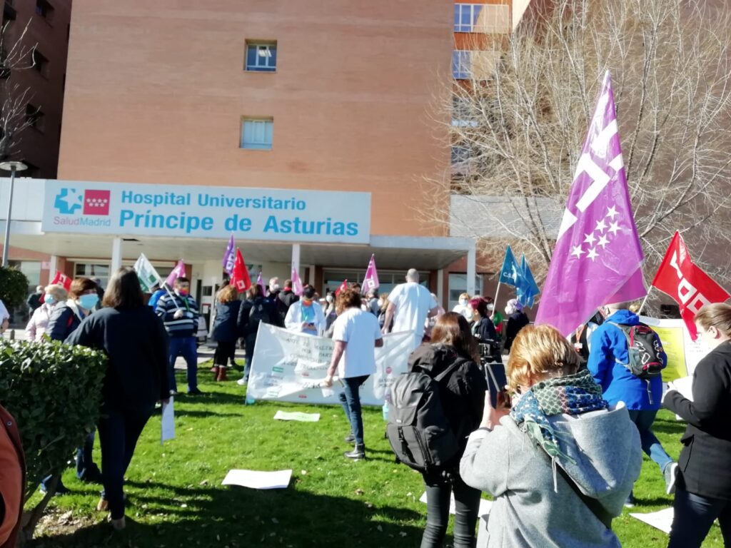Trabajadores se manifiestan a las puertas del Príncipe de Asturias. Fotografía: CCOO HenaresComo señalan desde CCOO Henares, “las trabajadoras y trabajadores del Hospital Universitario Príncipe de Asturias e Alcalá de Henares se han visto arropadas por parte de la ciudadanía, que ha reforzado con su presencia las demandas de este colectivo esencial para la sociedad y que se siente maltratado”.