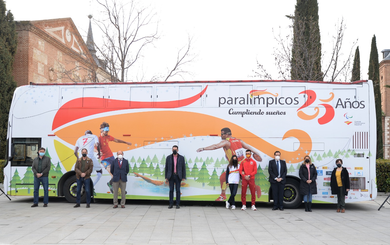Alcalá de Henares acoge hoy, 25 de febrero, un autobús vinilado y personalizado con motivo del 25 aniversario del Comité Paralímpico Español (CPE), que circulará hasta las 18:00 horas por los diferentes barrios de la ciudad y pasará por las tres ciudades deportivas municipales (Val, Juncal y Espartales).