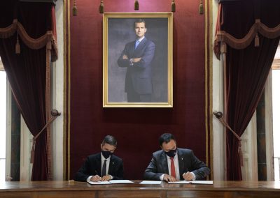 El alcalde de Alcalá de Henares, Javier Rodríguez Palacios, y el alcalde de Lebrija, José Benito Barroso Sánchez, han firmado esta tarde un convenio de colaboración para la conmemoración del V Centenario de la muerte de Elio Antonio de Nebrija, que tendrá lugar en 2022.