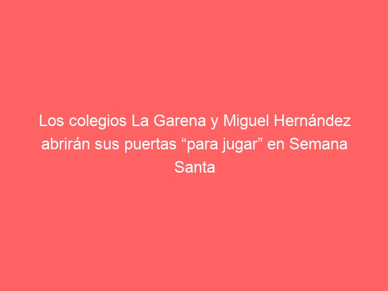 Los colegios La Garena y Miguel Hernández abrirán sus puertas “para jugar” en Semana Santa