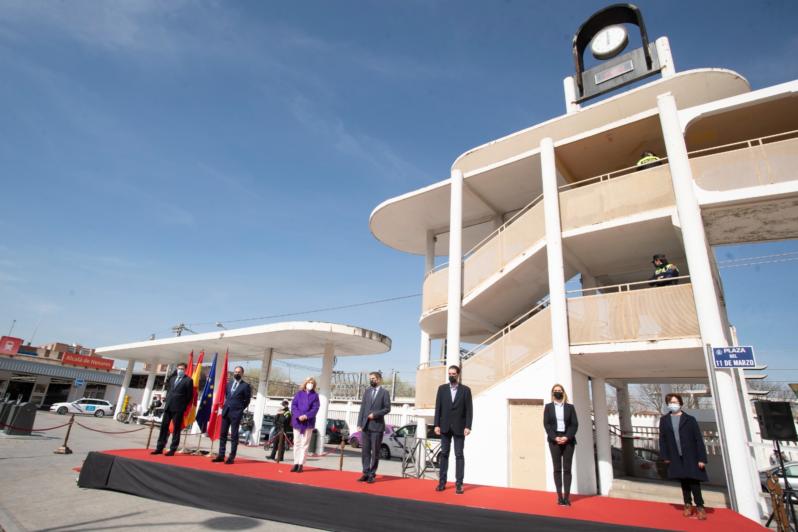 El alcalde de Alcalá de Henares, Javier Rodríguez Palacios, acompañado por los tenientes de alcalde, por los portavoces de los grupos políticos representados en el Consistorio, Partido Socialista, Ciudadanos, Partido Popular, Vox y Unidas Podemos Izquierda Unida, así como por concejales y concejalas, ha asistido esta mañana al minuto de silencio y posterior ofrenda floral con motivo del XVII Aniversario de los atentados del 11-M. Ha acudido al acto también Concepción Dancausa, viceconsejera de Vivienda de la Comunidad de Madrid.