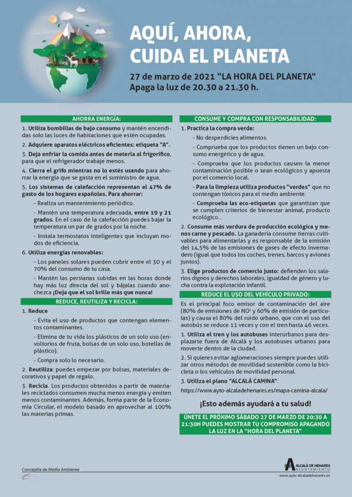 ALCALÁ DE HENARES/ 25 MARZO 2021/ El Ayuntamiento de Alcalá de Henares y la Universidad de Alcalá se unen un año más a la celebración de la #HoraDelPlaneta, adhiriéndose así a este compromiso para su preservación.
