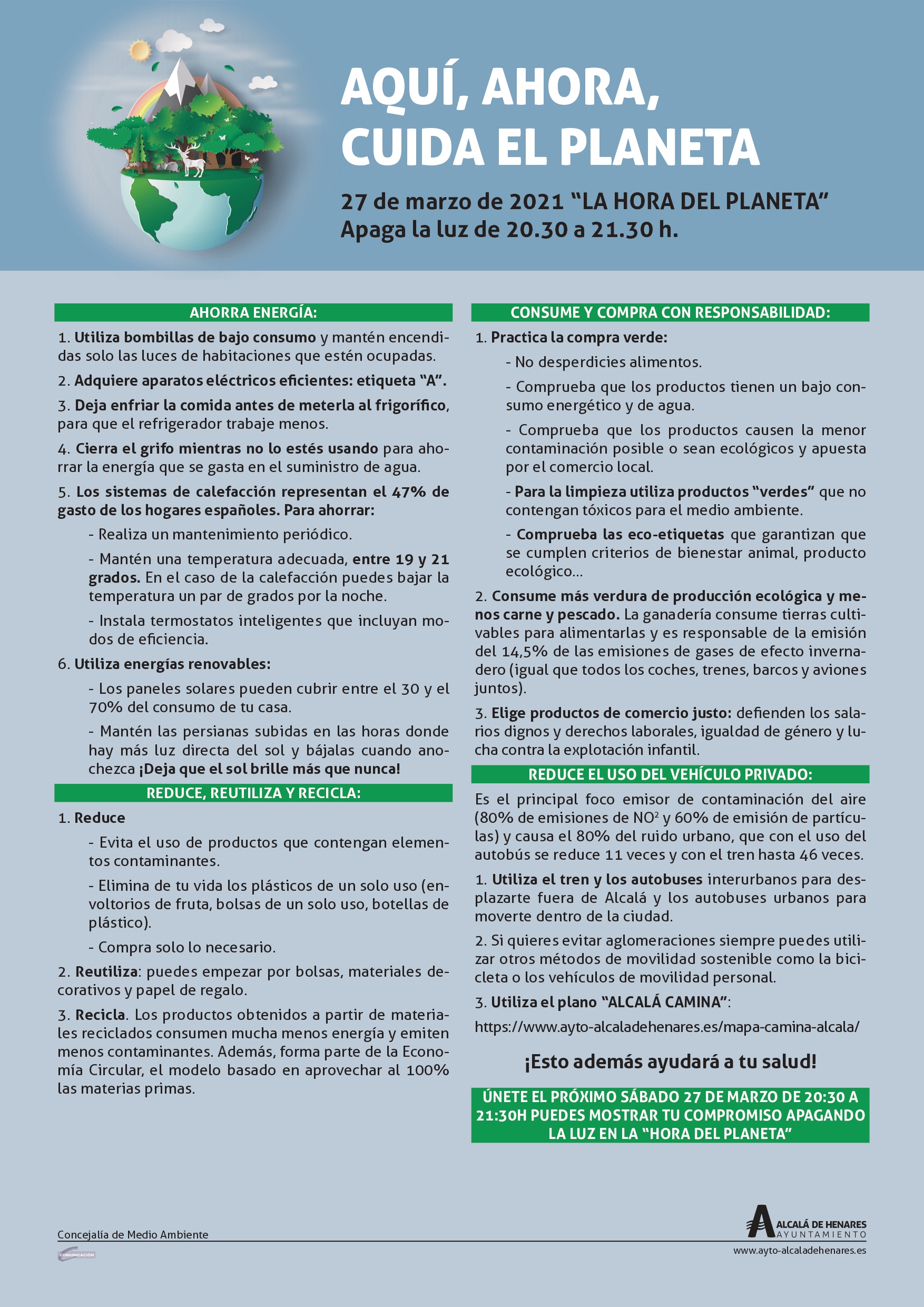 La Universidad y el Ayuntamiento de Alcalá de Henares se suman un año más a la #HoraDelPlaneta