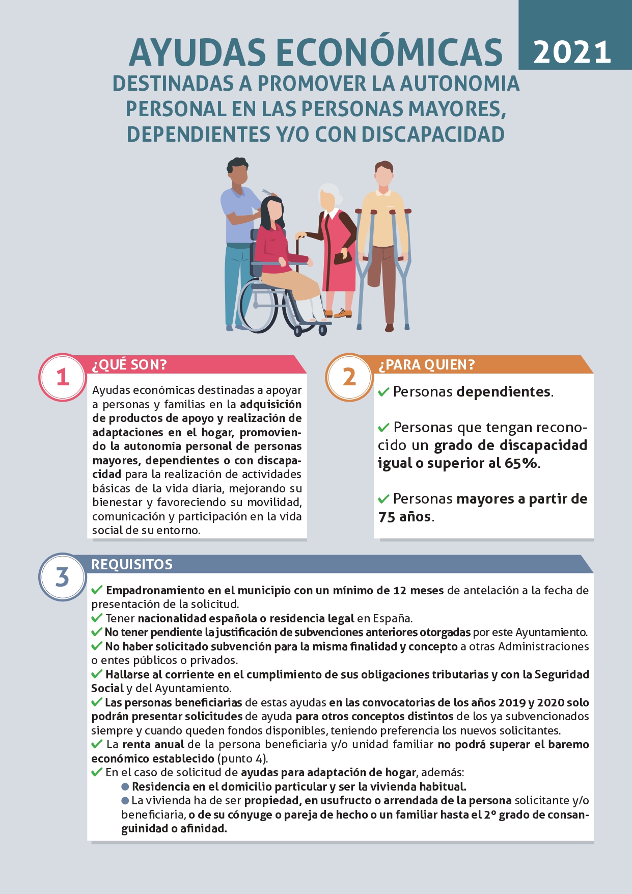 Se trata de ayudas económicas destinadas a apoyar a personas y familias en la adquisición de productos de apoyo y realización de adaptaciones en el hogar, promoviendo la autonomía personal de personas mayores, dependientes o con discapacidad para la realización de actividades básicas de la vida diaria, mejorando su bienestar y favoreciendo su movilidad, comunicación y participación en la vida social de su entorno.