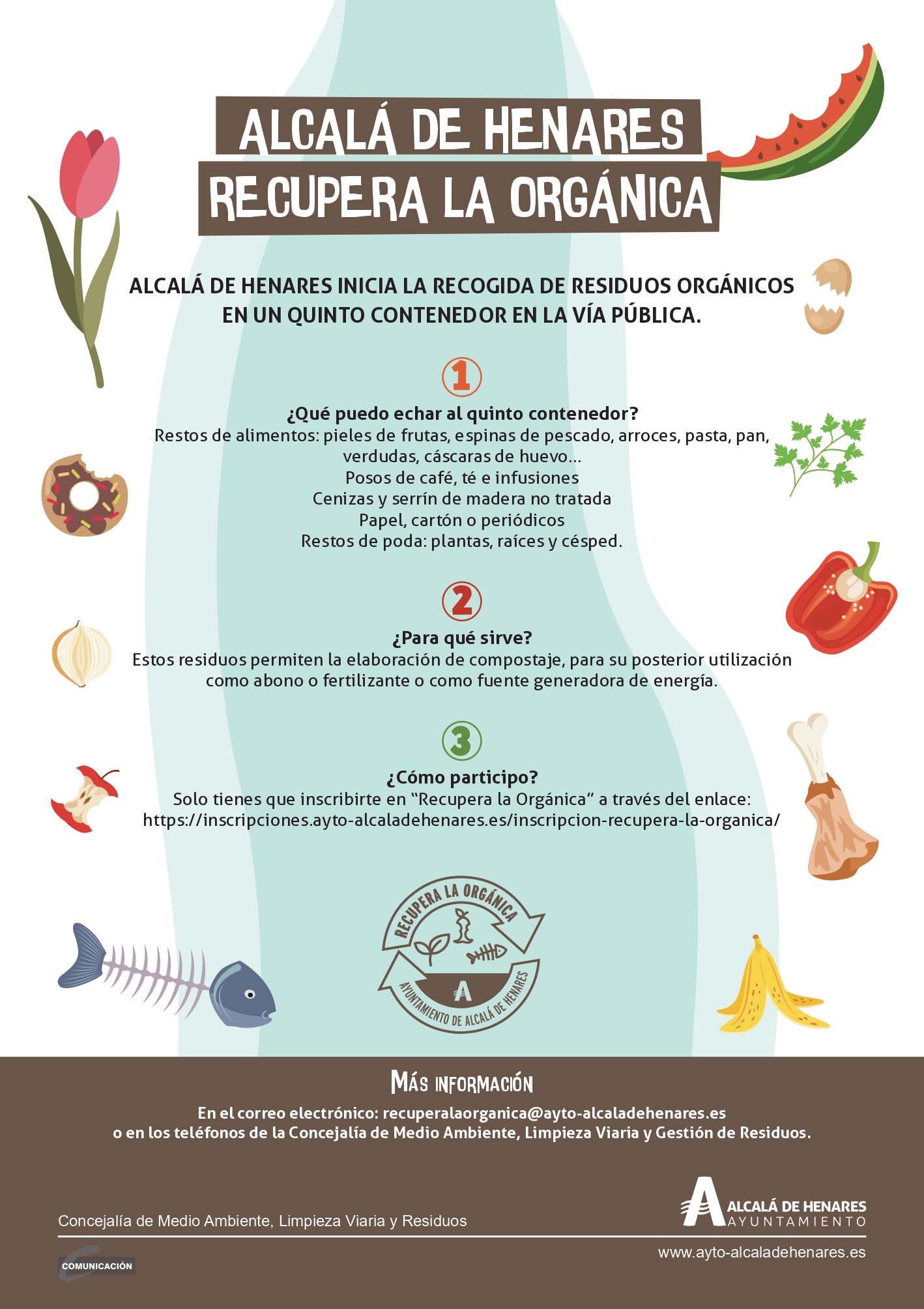 Para cualquier tipo de duda o más información, el Ayuntamiento de Alcalá de Henares ha habilitado el correo electrónico recuperalaorganica@ayto-alcaladehenares.es .