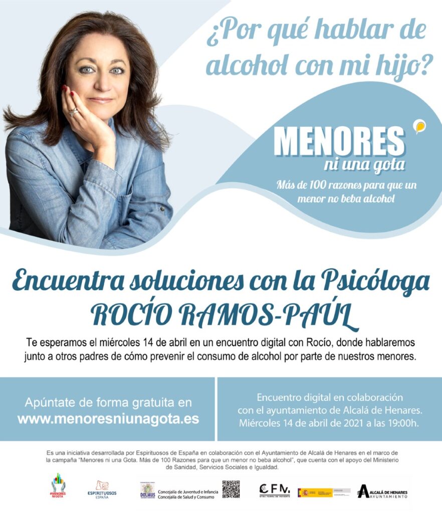 ALCALÁ DE HENARES/ 9 ABRIL 2021/ Alcalá de Henares acogerá el próximo miércoles 14 de abril, a las 19:00 horas, un encuentro online con familias de la ciudad para abordar la prevención del consumo de alcohol entre los menores a cargo de la psicóloga Rocío Ramos-Paúl, conocida por su intervención en el programa de televisión “Supernnany”. Será la segunda charla de la psicóloga en la ciudad complutense, tras el taller que impartió en 2019 a un total de 100 familias.