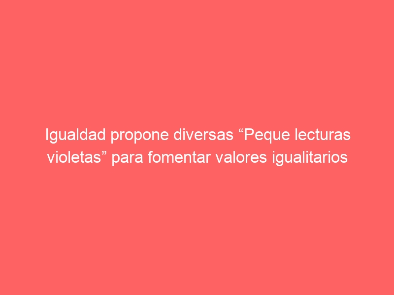 Igualdad propone diversas “Peque lecturas violetas” para fomentar valores igualitarios
