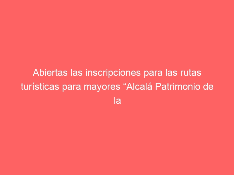 La entrada Abiertas las inscripciones para las rutas turísticas para mayores “Alcalá Patrimonio de la Humanidad” se publicó primero en Ayuntamiento de Alcalá de Henares.