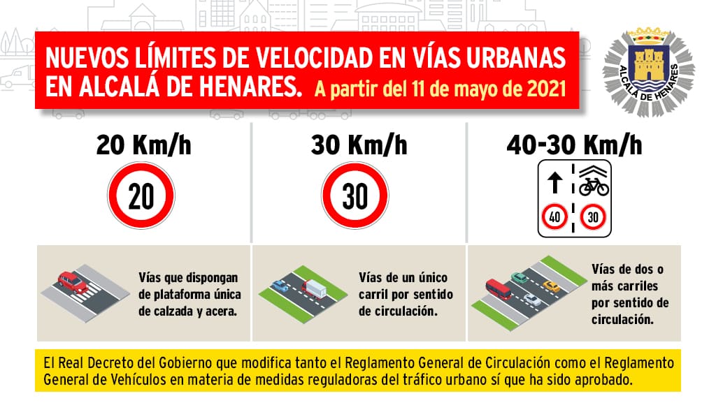 A partir del 11 de mayo, los límites de velocidad en la ciudad de Alcalá de Henares serán los siguientes: