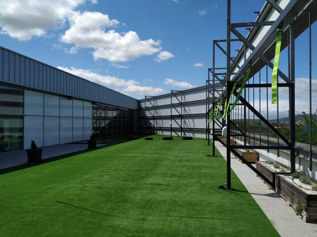 Las actuaciones han consistido en el cubrimiento del suelo de la sala exterior con césped artificial, la instalación de una carpa para habilitar dos jaulas que sirvan de almacenaje para el material necesario para la realización de las actividades, la instalación de una estructura para fijar los TRX de cara a los entrenamientos en suspensión.