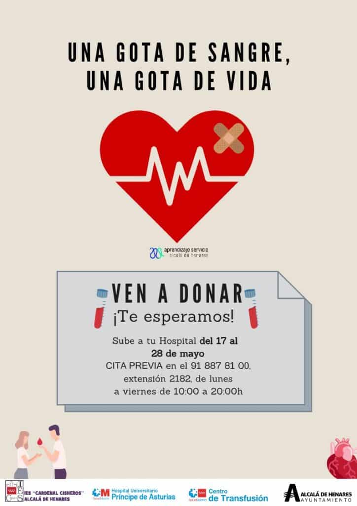 ALCALÁ DE HENARES/ 14 MAYO 2021/ Los alumnos de 3º de la ESO del Instituto de Educación Secundaria Cardenal Cisneros han elaborado un proyecto de Aprendizaje-Servicio denominado “Una gota de sangre, una gota de vida” para promover una nueva campaña de donación de sangre que tendrá lugar en el Hospital Universitario Príncipe de Asturias del 17 al 28 de mayo.