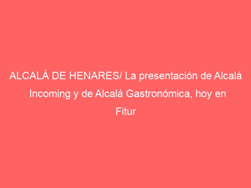 ALCALÁ DE HENARES/ La presentación de Alcalá Incoming y de Alcalá Gastronómica, hoy en Fitur