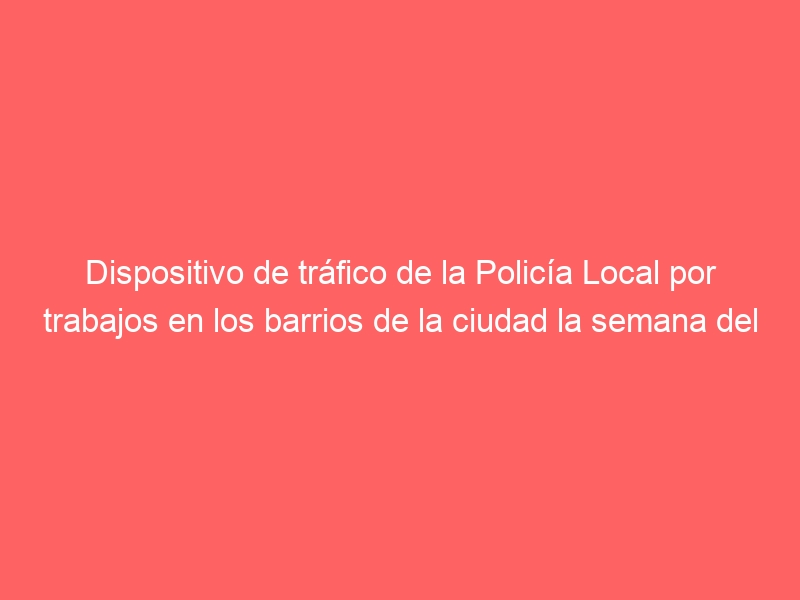 Consulta AQUÍ el dispositivo especial de tráfico que la Policía Local ha preparado con motivo de las diversas obras y actuaciones que el Ayuntamiento está llevando a cabo en los barrios de la ciudad.