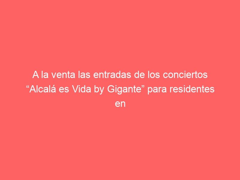 La entrada A la venta las entradas de los conciertos “Alcalá es Vida by Gigante” para residentes en Alcalá de Henares se publicó primero en Ayuntamiento de Alcalá de Henares.