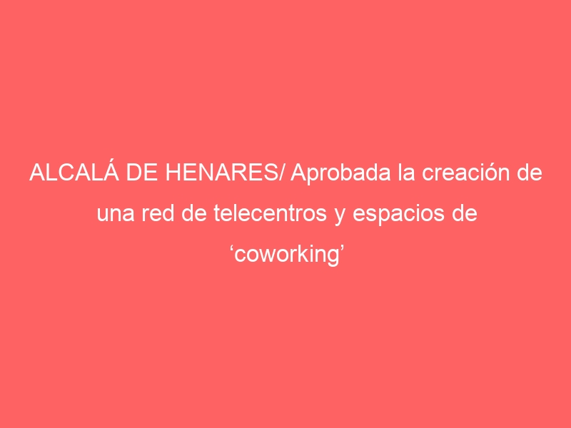 ALCALÁ DE HENARES/ Aprobada la creación de una red de telecentros y espacios de ‘coworking’