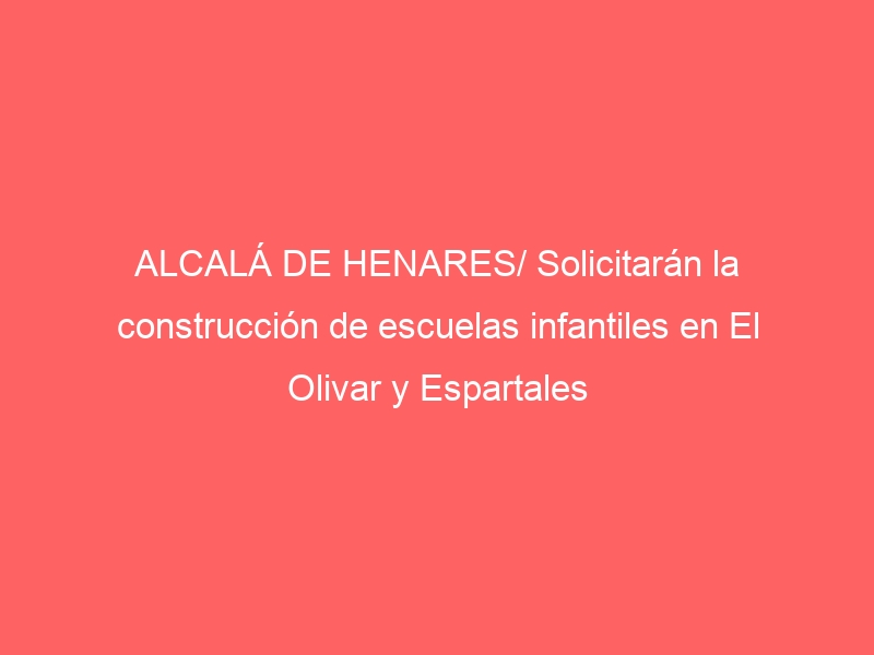 Queremos una Escuela Infantil en El Olivar y otra en Espartales. También otro colegio público en Espartales Norte. Muchas parejas jóvenes viven allí y se necesitan ya servicios educativos en estos barrios. Ya lo pedimos en la Junta de Distrito. Se aprueba. No lo apoya el PP. pic.twitter.com/TbcMZzxbsi— Ciudadanos Alcalá (@CSAlcalaH) July 20, 2021Es por ellos que se reclamarán estas Escuelas Infantiles para estos barrios que «necesitan con cierta urgencia la infraestructura educativa que atiende específicamente la Educación Infantil, como ya requirió Ciudadanos en enero de 2016, en Pleno de la Junta Municipal del Distrito IV, a través de una Moción».