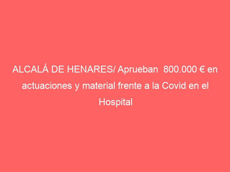 ALCALÁ DE HENARES/ Aprueban 800.000 € en actuaciones y material frente a la Covid en el Hospital