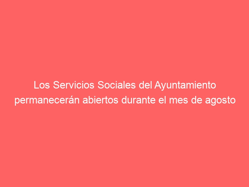 Los Servicios Sociales del Ayuntamiento permanecerán abiertos durante el mes de agosto