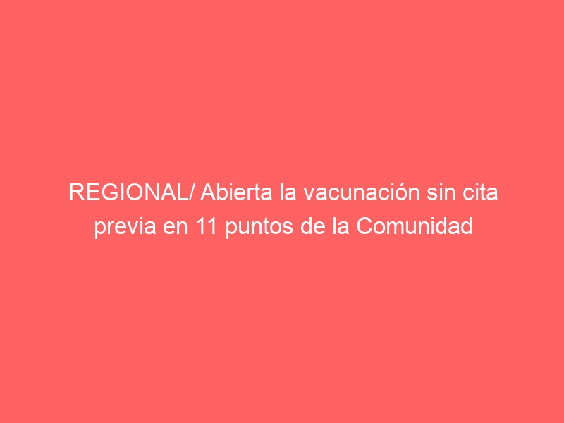 REGIONAL/ Abierta la vacunación sin cita previa en 11 puntos de la Comunidad