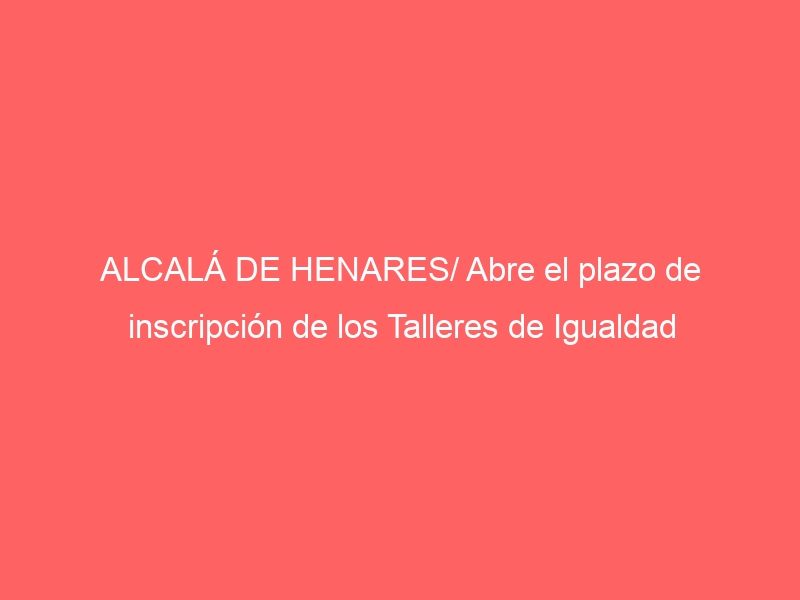 ALCALÁ DE HENARES/ Abre el plazo de inscripción de los Talleres de Igualdad
