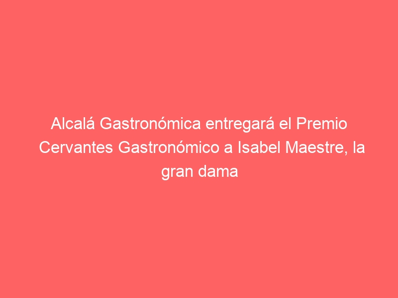 La entrada Alcalá Gastronómica entregará el Premio Cervantes Gastronómico a Isabel Maestre, la gran dama del catering en Madrid se publicó primero en Ayuntamiento de Alcalá de Henares.