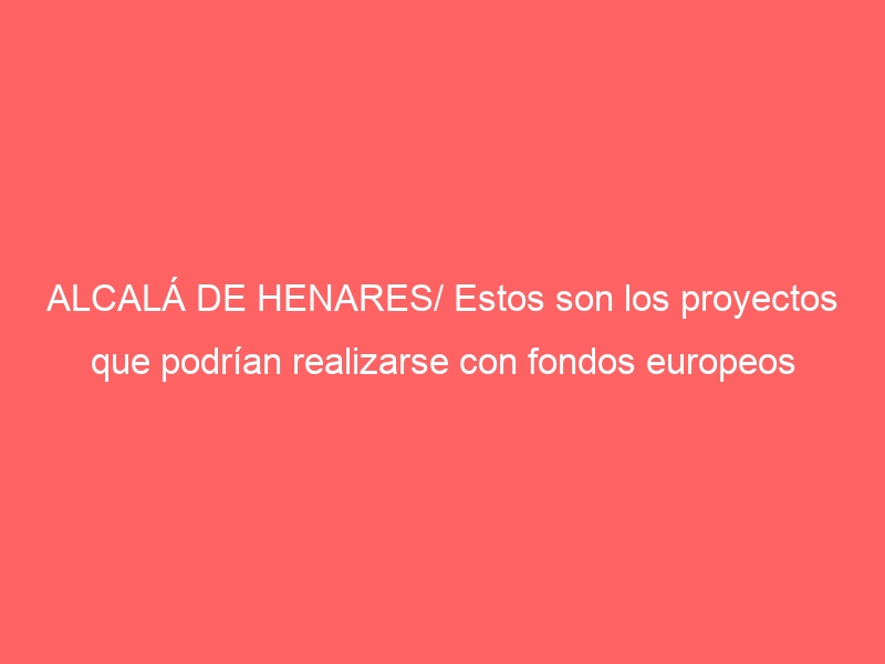 ALCALÁ DE HENARES/ Estos son los proyectos que podrían realizarse con fondos europeos