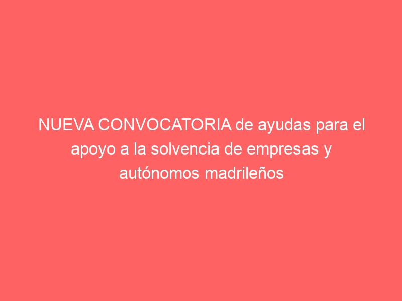 NUEVA CONVOCATORIA de ayudas para el apoyo a la solvencia de empresas y autónomos madrileños afectados por la covid-19 en su actividad