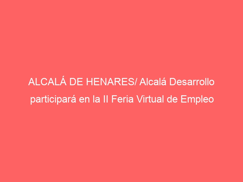 ALCALÁ DE HENARES/ Alcalá Desarrollo participará en la II Feria Virtual de Empleo