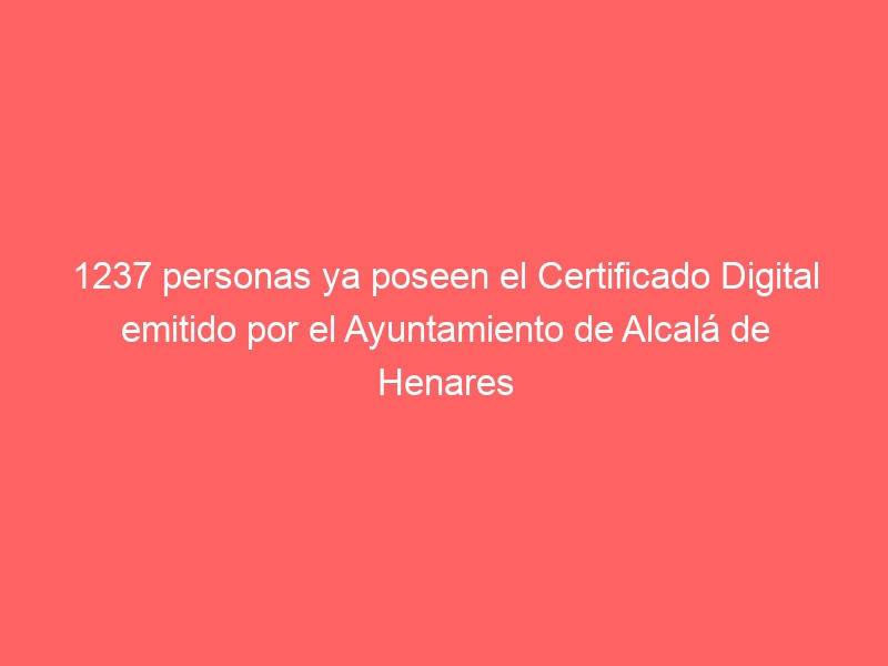 La entrada 1237 personas ya poseen el Certificado Digital emitido por el Ayuntamiento de Alcalá de Henares se publicó primero en Ayuntamiento de Alcalá de Henares.