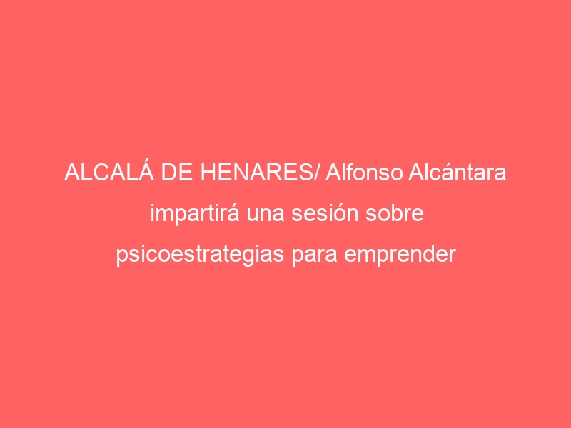 ALCALÁ DE HENARES/ Alfonso Alcántara impartirá una sesión sobre psicoestrategias para emprender y reinventarse
