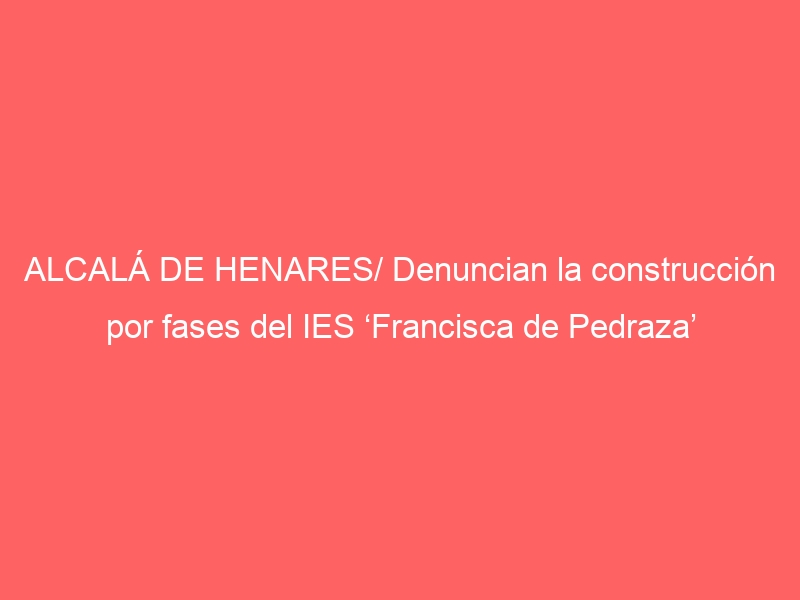 ALCALÁ DE HENARES/ Denuncian la construcción por fases del IES ‘Francisca de Pedraza’