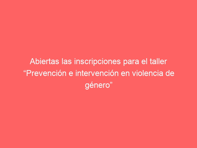 Abiertas las inscripciones para el taller “Prevención e intervención en violencia de género”