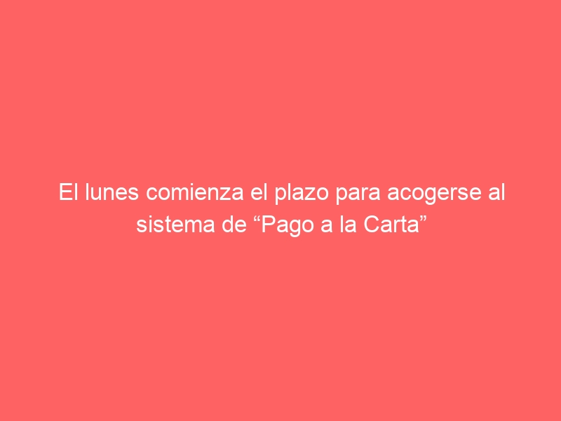 El lunes comienza el plazo para acogerse al sistema de “Pago a la Carta”