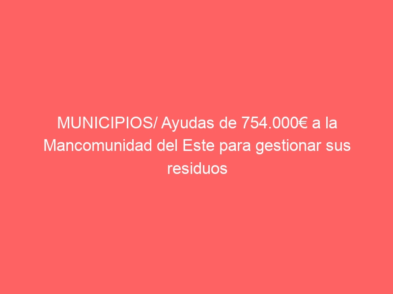 MUNICIPIOS/ Ayudas de 754.000€ a la Mancomunidad del Este para gestionar sus residuos