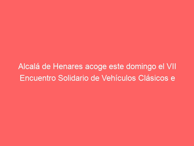 La entrada Alcalá de Henares acoge este domingo el VII Encuentro Solidario de Vehículos Clásicos e Históricos se publicó primero en Ayuntamiento de Alcalá de Henares.