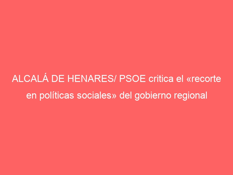 ALCALÁ DE HENARES/ PSOE critica el «recorte en políticas sociales» del gobierno regional